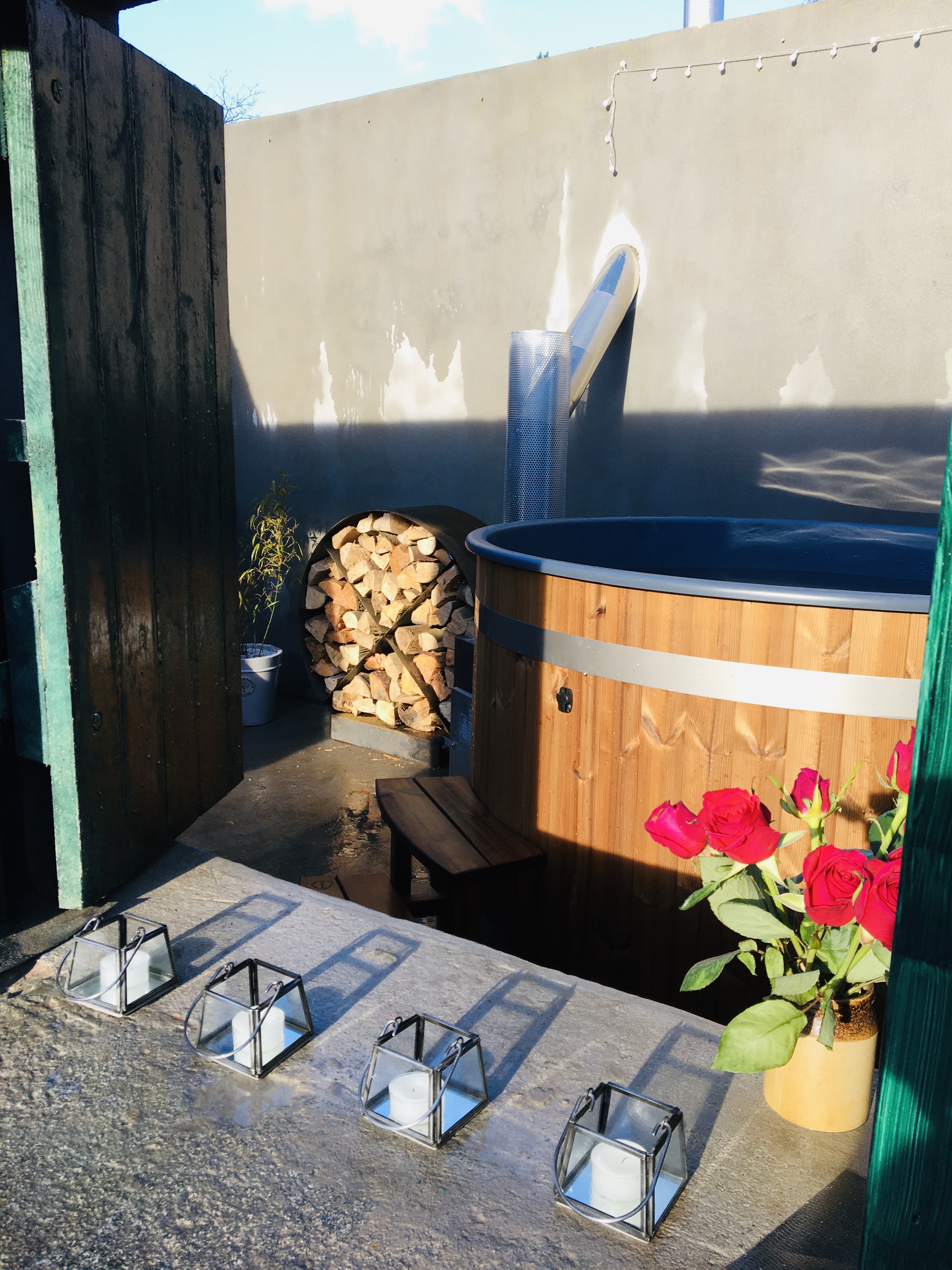 The Bothy: The outhouse situated at the bottom of the garden. This is where the wood burning hot tub is located. Retractable roof so it can be enjoyed no matter the weather.